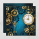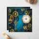 Carte De Correspondance Fond turquoise Steampunk avec engrenages