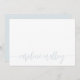 Nos cartes à plat personnalisées chic comprennent votre nom ou votre choix de personnalisation le long du fond en à peine il bleu pastel écriture en lettres peintes à la main avec des swashes décoratifs.