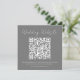 Faites de votre mariage un processus RSVP transparent, avec notre carte de code RSVP QR. Cette carte personnalisable présente des lettres blanches modernes avec un arrière - plan gris chic. L'avant comprend une zone de texte personnalisable et un espace pour générer un code QR unique pour les invités à RSVP facilement à travers leurs smartphones. Allez dans l'option "personnaliser", ajoutez l'URL de votre site mariage à la zone fournie, et un code QR sera généré sur la conception juste pour vous. Au contraire, ajoutez une touche personnelle avec une photo. Faites de votre journée spéciale une journée encore plus mémorable grâce à cette carte mariage chic et fonctionnelle.