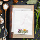 Lined writing paper with flowering herbs design. Small size flat paper with a place for a first name initial as the backdrop for your words. The single letter nearly covers the entire page. A group of herbs, including purple thistle, yellow calendula, and white yarrow, makes a little border at the bottom. On the back, simple calendulas in the corner at the bottom are the only decor. Both sides contain lines. You may change the paper size.