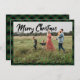 Carte De Correspondance Joyeux Noël Script Marine Plaid Photo Holiday