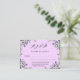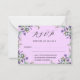 Une carte RSVP décorée de fleurs de lavande et de verdure. Arrière - plan rose. Personnalisez et ajoutez la réponse par date. Retour : arrière - plan couleur lavande.