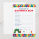 Apportez la magie de la très populaire Chenille qui fait des trous d'Eric Carle à n'importe quelle fête d'anniversaire avec cette charmante carte d'anniversaire. Cette carte présente la célèbre chenille dans un design ludique et festif, avec des éléments de fête colorés comme des ballons, des confettis et une typographie vive et joyeuse. Capturant parfaitement l'essence fantaisiste des illustrations iconiques d'Eric Carle, cette carte est idéale pour une liste de souhaits pour le garçon d'anniversaire.
