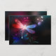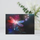 Lumineuse, volante, libellule rouge, avec des ailes transparentes et détaillées sur arrière - plan sombre, nocturne, lumineux avec plantes tropicaux et lucioles. libellule rouge.
