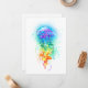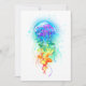 Grande méduse irisée, artistiquement dessinée, brillante, avec de longues tentacules sur le blanc, peinte sur l'arrière - plan multicolore. Méduse arc-en-ciel.
