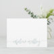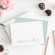 Nos cartes à plat personnalisées et chic portent votre nom ou votre choix de personnalisation le long du fond, à peine il y a un script en lettres pastel vert mer avec des swashes décoratifs.