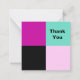 Disposez d'un "Merci" élégant avec cette carte couleur abstraite moderne. L'avant de la carte est divisé en quatre sections carrés, de couleurs magenta, noir, turquoise et rose. Au dos, la carte est blanche pour écrire son propre message, avec une bordure divisée en quatre couleurs. Le style, simple et contemporain, ne manquera pas de faire une impression remarquable.
