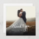 Une façon géniale et réfléchie de remercier vos amis, votre famille et vos collègues qui vous ont honoré de leur présence le jour de votre mariage avec cette photo minimaliste moderne, cartes de remerciement avec script écrit "merci" et un coeur d'amour.