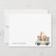 Ce carte pour notes pour enfants présente un design épuré et minimaliste dans le coin inférieur droit d'un camion vintage vert clair transportant un groupe d'animaux joyeux, dont un ours, un lion, une girafe, un renard et un ours plus petit. Le reste de la carte est vide, créant une esthétique simple et élégante.