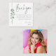 Taille mini 2,5” carré Eucalyptus Photo Vingt-et-unième Remerciements. VEUILLEZ NOTER que si vous êtes aux États-Unis, le format 2,5” carré est plus petit que la taille minimum requise pour l'affranchissement, veuillez donc choisir le format 5,25” x 5,25” carré si vous avez l'intention de les envoyer par la poste (Notez également que les cartes carrées peuvent coûter plus cher à envoyer que les rectangulaires). Design contemporain de feuilles d'eucalyptus avec un style d'écriture manuscrit élégant pour les Remerciements. Au verso, remplacez la photo exemple par votre photo préférée de votre fête. Personnalisez facilement le reste du texte avec votre message et votre nom.