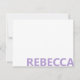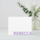 Create your own custom note card featuring modern typography name in lavender purple color.