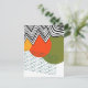 Ce carte pour notes plat et vierge a un design moderne du milieu du siècle de lignes courbes et zigzag en noir, cercles en jaune, orange et vert, et un rectangle fait de lignes turquoises pointillées. Ajoutez votre propre message personnel. Si vous voulez le même design avec des couleurs différentes, envoyez-moi un message.