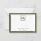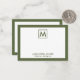 Le design de la carte à billet plat à double face intemporelle présente un monogramme vert olive et blanc avec nom et titre dans les tiers inférieurs, encadré en olive. Une typographie élégante qui peut être personnalisée avec votre nom ou texte personnalisé. L'espace pour votre note manuscrite est inclus à l'avant et à l'arrière.