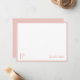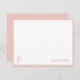 Blush Pink White Chic Script manuscrit Monogramme Modèle Carte de note plat personnalisée.
