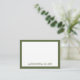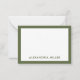 Le design de la carte à billet plat à double face intemporelle présente un design monogramme vert olive et blanc avec nom dans les tiers inférieurs, encadré en olive. Une typographie élégante qui peut être personnalisée avec votre nom ou texte personnalisé. L'espace pour votre note manuscrite est inclus à l'avant et à l'arrière.