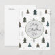 Carte de vœux de Noël avec motif mignon d'arbres de Noël points verts monogrammé. Cette carte de Noël pourrait convenir à un adulte, homme ou femme. Un motif graphique mignon d'arbres de Noël et de points, vert et bleu sur fond blanc.