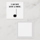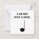 Cette carte humoristique de notes frappera une corde sensible chez les musiciens. La carte à thème de la musique montre un quart de note de dessin animé (crotchet), avec la légende "Je ne suis pas juste une note" dans la typographie au pochoir cool. Le revers de la carte est blanc clair pour votre propre message, avec un motif de 5 lignes autour du bord comme manuscrit de musique. (Lorsque vous écrivez au verso de la carte, vous pouvez toujours ajouter une mélodie sur la stave!)