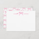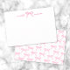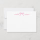 Magenta Pink Bow Carte de note personnalisée. Cette carte à notes charmant et minimaliste présente un look doux et élégant avec des accents de rose magenta vibrants, parfait pour des notes personnelles, merci, ou des occasions spéciales comme des douches nuptiales, des baby showers ou des anniversaires. Au centre supérieur de l'avant, un arc rose magenta dessiné à la main ajoute une touche ludique mais élégante, tandis que le prénom est affiché à gauche et le nom de famille à droite dans un script fluide écrit à la main dans le magenta correspondant. Le dos poursuit le thème avec un amusant motif de arcs magenta, liant l'ensemble du design d'une manière moderne mais féminine. Vous pouvez customiser le nom et la couleur de police si vous voulez, mais cette version magenta apporte un style audacieux et poli. Que vous le donniez ou que vous le gardiez pour vous-même, cette carte de notes allie simplicité et personnalité d'une manière à la fois pratique et chic.