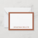 Le design de carte à billet plat recto verso intemporel présente un design en terre cuite et monogramme blanc avec nom dans les tiers inférieurs, encadré en terre cuite orange. Typographie de bloc classique qui peut être personnalisée avec votre nom ou texte personnalisé. L'espace pour votre note manuscrite est inclus à l'avant et à l'arrière.