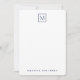 Des cartes pour notes de papeterie plats et vierges présentant votre monogramme initial à l'intérieur d'une mince bordure carré. Ajoutez un nom personnalisé ou un autre texte en bas.