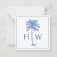 Cette petite carte de note d'inspiration côtière présente un palmier classique en bleu sur un arrière - plan blanc avec un monogramme que vous pouvez personnaliser avec votre choix d'initiales.