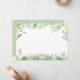 Nos mignonnes cartes plates de papeterie présentent une bordure supérieure de fleurs jaunes et bleues avec des feuilles vertes. Le bas de la carte de note personnalisée présente des lapins et des œufs de Pâques à l'aquarelle dans une herbe verte vibrante. L'envers des cartes présente un fond vert clair uni. Utilisez les cartes de notes de lapin pour écrire des notes et des cartes de remerciement aux invités de baby shower ou de fête d'anniversaire. Conçues pour se coordonner avec notre collection Watercolor Spring Bunnies.