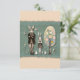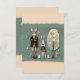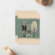 Carte de Pâques avec fond de papier déchiré vert à l'avant et à l'arrière. Selon la taille, l'aspect déchiré peut ne pas être visible ou imprimé. Si cela pose problème, veuillez nous contacter et nous redimensionnerons pour répondre à vos besoins. Lapin élégant et fille debout les bras croisés, la fille portant des oreilles de lapin. Arbre en collage effet printemps. Les couleurs peuvent ne pas être imprimées en néon, mais les couleurs les plus proches seront choisies. Lapin et œuf également sur l'illustration.