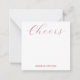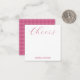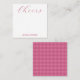 Personalized stationery enclosure notecard with a pink gingham pattern in notes of dark deep and vibrant rose pink with the sentimental words "Cheers". Tuck it into a flower bouquet or meaningful gift. These minimal flower shop inspired enclosure cards bring a retro kitchen vibe to your most thoughtful moments.