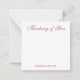 Personalized stationery enclosure notecard with a pink pin stripe pattern in notes of dark deep and vibrant rose pink and bubble gum pink with the sentimental words "Thinking of You". Tuck it into a flower bouquet or meaningful gift. These minimal flower shop inspired enclosure cards bring a retro kitchen vibe to your most thoughtful moments.