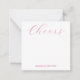 Personalized stationery enclosure notecard with a pink gingham pattern in notes of dark deep and vibrant rose pink bubble gum and white with the sentimental words "Cheers". Tuck it into a flower bouquet or meaningful gift. These minimal flower shop inspired enclosure cards bring a retro kitchen vibe to your most thoughtful moments.