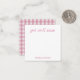 Personalized stationery enclosure notecard with a pink gingham pattern in notes of dark deep and vibrant rose pink bubble gum and white with the sentimental words "get well soon". Tuck it into a flower bouquet or meaningful gift. These minimal flower shop inspired enclosure cards bring a retro kitchen vibe to your most thoughtful moments.