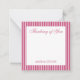 Personalized stationery enclosure notecard with a pink pin stripe pattern in notes of dark deep and vibrant rose pink bubble gum and white with the sentimental words "Thinking of You". Tuck it into a flower bouquet or meaningful gift. These minimal flower shop inspired enclosure cards bring a retro kitchen vibe to your most thoughtful moments.