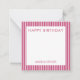 Personalized stationery enclosure notecard with a pink pin stripe pattern in notes of dark deep and vibrant rose pink bubble gum and white with the sentimental words "HAPPY BIRTHDAY". Tuck it into a flower bouquet or meaningful gift. These minimal flower shop inspired enclosure cards bring a retro kitchen vibe to your most thoughtful moments.