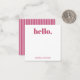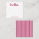 Personalized stationery enclosure notecard with a pink pin stripe pattern in notes of dark deep and vibrant rose pink bubble gum and white with the sentimental words "hello". Tuck it into a flower bouquet or meaningful gift. These minimal flower shop inspired enclosure cards bring a retro kitchen vibe to your most thoughtful moments.