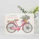 Un vélo de fille rose, vintage, avec un panier avant rempli de fleurs. Une jolie carte de remerciement personnalisée, aquarelle, pour une jeune fille. Fait un cadeau utile et apprécié pour les anniversaires, les vacances, les remises de diplômes et plus encore.