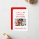 Carte de vœux photo drôle de la Saint-Valentin Tu es ma petite amie préférée comprend votre photo préférée avec le texte "Tu es ma petite amie préférée, joyuse Saint-Valentin" en typographie rouge moderne accentuée d'un simple cœur rouge. Ajoutez votre texte personnalisé à l'intérieur. Accentué de cœurs d'amour. Cadeau parfait pour votre petite amie pour la Saint-Valentin. Conçu par © Evco Holidays www.zazzle.com/store/evcoholidays