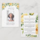 "Créez un hommage sincère avec notre design éditable de prière commémorative des roses jaunes. Ce modèle joliment ouvragé mêle des fleurs sauvages délicats à l'élégance douce des papillons, offrant un cadre serein pour vos souvenirs et vos prières. Customisez facilement avec le nom, les dates et un message personnalisé de souvenir de votre être cher.