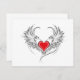 Coeur rouge peint de façon artistique avec ailes d'ange gris, décoré de contour lisse noir.