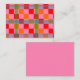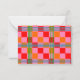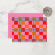 This note card has a mid-century modern design of red, pink, and orange squares and green and blue lines forming a plaid design. Add a message on the back as desired. If you like different colors, message me.