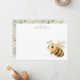 This sage green nursery note card features a cute bee surrounded by wildflowers on a soft natural background. The calm and elegant design makes it a perfect personalized stationery piece.