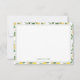 La première saison d'une récolte de citron s'étend de la fin de l'hiver au début de l'été. Cependant, vous pouvez célébrer le plaisir d'une floraison d'agrumes toute l'année avec cette carte de papier à lettres personnalisée. Il dispose d'un motif citron jaune et vert vif ainsi que d'une tache pour votre nom personnel et des détails.