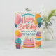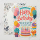 La carte présente un design coloré et festif avec l'expression "Joyeux anniversaire" affichée en évidence dans le centre. Elle est ornée de ballons, de cupcakes, d'un gâteau d'anniversaire avec des bougies et d'une boîte cadeau. L'arrière - plan comprend des étoiles et des points, ajoutant à l'atmosphère festive.