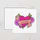 Carte De Correspondance Tatouage cœur vert rose avec nom personnalisé noir
