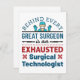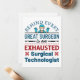 Le design de technologue chirurgical est un cadeau d'appréciation amusant pour le maquereau, le technicien chirurgical ou le technicien de salle d'opération. Parfait pour les hommes ou les femmes qui ont un emploi de soins chirurgicaux. Design dit : "Derrière chaque grand chirurgien se trouve un technologue en chirurgie épuisé"