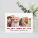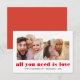 HEUREUSE SAINTE-VALENTIN ! Partagez l'amour avec votre famille et vos amis grâce à cette carte graphique contemporaine et minimaliste avec 2 de votre meilleure photo et "tout ce dont vous avez besoin, c'est de l'amour" EN ROUGE Le dos de la carte présente une pop de couleur de coordination. Carte de luxe minimale pour les salutations tendance de Saint Valentin ou en famille!