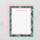La carte de note verticale personnalisée à plat porte un prénom personnalisé en texte rose moderne, encadré d'une bordure de palme vert luxuriant et de motif en feuille de monstère de frondes en couches avec un arrière - plan blanc propre. Un arrière - plan rose clair habille le dos de la carte. Une élégante papeterie botanique pour l'été.