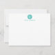 Carte Turquoise Aqua Script Monogramme Circle Modern Girl Note Card