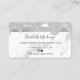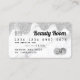 Un élégant carte de visite de style de carte de crédit de beauté moderne et élégant avec une typographie de police de script moderne sur une parties scintillant en faux argent chic goutte sur le marbre blanc de luxe. tout le texte est personnalisable, ajoutez vos médias sociaux. Avec une bande d'or faux rose. Ajoutez votre logo, votre monogramme et votre code QR.
