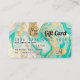 Une élégante beauté moderne et élégante Cheveux et maquillage artiste carte de crédit style carte cadeau avec une typographie de police script moderne sur une agate de géode en or, en marbre turquoise et or métal feuille arrière - plan tendance glam. tout le texte est personnalisable, ajoutez vos médias sociaux. Avec fausse bande d'or. Ajoutez votre logo, votre monogramme et votre code QR.