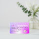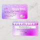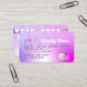 Une élégante beauté moderne et élégante Cheveux et maquillage artiste carte de crédit style fidélité carte de visite avec une typographie de police de script moderne sur un chic faux rose violet feuille métallique arrière - plan et rose or parties scintillant scintille ombre. tout le texte est personnalisable, ajoutez vos médias sociaux. Avec une bande d'or faux rose. Ajoutez votre logo, votre monogramme et votre code QR.